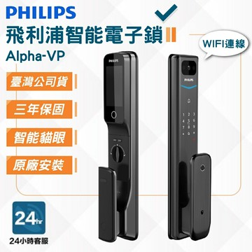 【不要再買沒保固的水貨了,不但飛利浦APP不能用,還沒有保固無保障,非原廠認證專業師傅安裝更是恐怖】 【交給原廠認證專業師傅安裝,安心保固三年,全功能開放,不再買半殘水貨就是現在】 (注意:特殊門:敵鋭門、木門、內部材質為實木之門扇,以上要收特殊安裝費) ★購買時可先加LINE@詢問 :@337qqxaf ★ Philips 智能門鎖 Alpha-VP 融合貓眼、門鈴及門鎖功能 ★ 採用 200 萬像素廣角相機並支援 Wi-Fi 網路,讓您透過應用程式查看門口情況 ★ 保固36個月 ★商品價格含原廠基本安裝,提供完善三年保固,請安心購買 ★如為特殊門片費用另計 ★如配送地區為宜花東或其他特殊偏遠地區運費另計