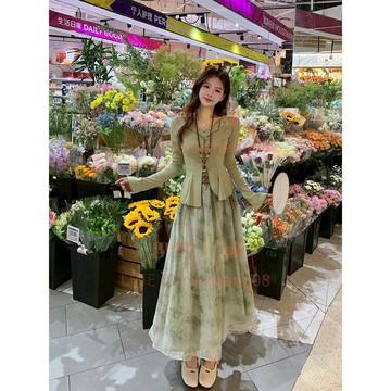 早春2022新款女裝法式連衣裙子溫柔風穿搭鹽系兩件套裝女小子夏
