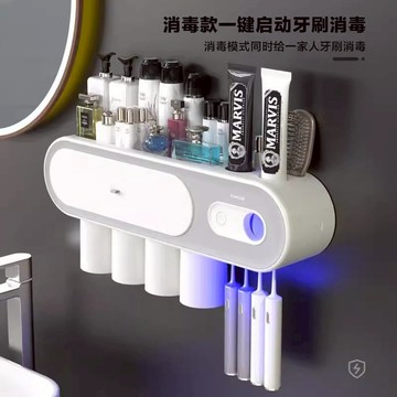 智能牙刷杯架 網紅消毒牙刷置物架衛生間收納放化妝品免打孔一體壁掛擠牙膏神器