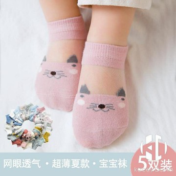 嬰兒襪子夏季薄款寶寶新生幼兒童男女0-1歲船襪網眼水晶絲春純棉【聚物優品】
