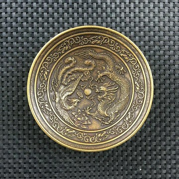 古玩雜項收藏復古銅器龍鳳碗龍鳳盤子碟子筆洗浮雕龍鳳盤子