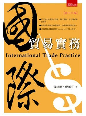 【簡介】 ※深入淺出的重點式說明,輔以實例,提升讀者學習效率。 ※每章皆附習題及實習練習,加深讀者學習印象。 ※依據最新國貿條規Incoterms2020修訂。 國際貿易乃我國至為重要的經濟活動,為培育相關人才,各大專院校大多設有國際貿易科系或安排有國際貿易實務的課程。本書即鑒於教學上的需要,為期能配合各種不同時數課程之教授,在內容的編寫上多採深入淺出的重點式說明,並盡量舉實例,以便各種不同需求、程度的學習者,均能獲得最有效率的學習。 此外,為使學習者得以更接近實際,本書均採用最新規定為說明依據,並在每章後都附有習題及實習,供讀者複習、練習。而為提供讀者更多的方便,各類單據製作所需的空白表格亦一併附於書後,俾使其能透過實務的演練與應用,進一步結合國際貿易理論與實際。 連結至五南圖書公司網頁:https://www.wunan.com.tw/ (輸入書號1O18,即可找到資料下載處) 【目錄】 第一章 概論 第二章 國際貿易的主體與客體 第三章 國際貿易進出口程序概要 第四章 進行交易前的準備工作 第五章 貿易條件與其運用 第六章 基本交易條件的解說 第七章 出口價格與進口成本的估算 第八章 交易磋商的進行程序 第九章 進出口契約書的簽立 第十章 進口簽證 第十一章 貿易付款方式之一-商業信用狀 第十二章 貿易付款方式之二-匯付搭配擔保工具 第十三章 備貨、出口檢驗及公證 第十四章 出口簽證、報關與裝運 第十五章 國際貿易相關保險 第十六章 國際貿物海洋運輸 第十七章 貨櫃運輸與複合運輸 第十八章 國際貨物航空運輸 第十九章 貿易單據 第二十章 外匯與出進口結匯 第二十一章 進口報關檢驗與提貨 第二十二章 貿易糾紛與索賠 第二十三章 國際商務仲裁
