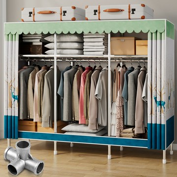 簡易布衣櫃 加粗耐重衣櫥 折疊衣櫃 免安裝 衣櫃免安裝衣櫥簡易布衣櫃全鋼架折疊家用臥室鋼管加粗加固掛衣櫃『cyd3938』U