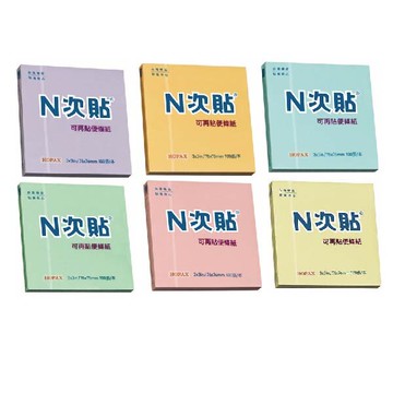 【N次貼】標準型可再貼便條紙 76x76mm 100張/本 61115-61120 黃、粉紅、藍、綠、橘、紫