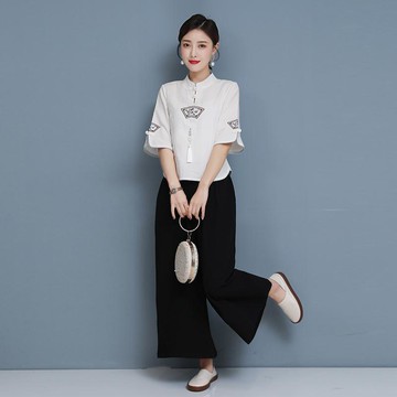 中式唐裝套裝復古棉麻禪茶服禪修居士服中國風漢服禪意女裝兩件套