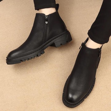 【大尺碼女鞋】真皮拉鍊切爾西短靴(視覺顯瘦/最大45)-墨黑