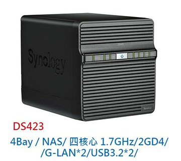 4711174724918 Synology 群暉科技 DiskStation DS423 (4Bay/Realtek/2GB) NAS 網路儲存伺服器 ◆適合企業的高效能儲存解決方案,專為可靠性而設計 ◆多功能儲存系統,幫助整合及儲存不斷增長的數位資料 ◆即時影像監控,安全無虞的企業監控系統 ◆快速外部存取 ║退換貨注意事項║ ●產品無瑕疵、無故障,如已拆封使用,之後因個人因素、喜好之原因而想退貨,會酌收二至三成之整新費用。 如對商品有疑慮或猶豫者,請先不要拆開商品外包裝並保持商品完整性(包括商品本體、配件、贈品、保證書、 原廠包裝及所有附隨文件或資料的完整性,切勿缺漏任何配件或損毀原廠外盒) ●猶豫期非試用期,避免爭議,拆封時請"全程錄影"以確保自身權益!外箱破損、封口不平整請勿收件。 猶豫期非試用期,避免爭議,拆封時請"全程錄影"以確保自身權益!外箱破損、封口不平整請勿收件。 ●「若商品不慎標價錯誤、或是文案與內容有誤、廠商統一按照商品品名為主進行出貨」,有任何疑問請與廠商聯繫確認清楚再進行下單,若發現客人明知商品文案或是價格有問題還惡意下單並未告知,廠商有權益取消訂單,另外缺貨沒庫存的情況,訂單便不會生效,在此強調避免造成買賣雙方不必要的糾紛,當您下單等同同意賣家以上所有的陳述,在此造成您的不便,敬請見諒。 ●實體店面,銷量快,賣場數量≠實際庫存唷!請先詢問有無現貨.再下標 ●超過猶豫期天數之權益 ●3C產品波動大,如遇產品缺貨或停產,結帳後廠商有權保留訂單接受與否權利,或以商品的替代款出貨, 不另行通知,請客人見諒,如同意該條款再下單。 ●以上規格資料若有任何錯誤或原廠更動,以原廠所公佈資料為準。 ●因適逢產品變更包裝設計,出貨包裝有新舊版視覺之不同,隨機出貨,但內容物不變,敬請見諒。 ●賣場商品之詳細規格請依照官網為主,以避免期間原廠改版,規格有落差。 ●退換貨包裝必須完整(包材、塑膠袋、原廠紙箱...等) ●請勿在退換貨商品原外箱上,書寫任何字樣(管理員代退的請告知),會有費用產生($1000元) ●退回商品必須是全新狀態(不得有刮傷)且有完整的包裝,(主商品、附件:驅動程式、應用軟體(不得拆封)、作業系統軟體(不得拆封註冊)、電源線、變壓器、包裝包含外紙箱、內紙箱(本商品包裝紙箱皆有序號管理,恕原廠及特約廠商無法提供折扣退款金額)、配件紙箱、保麗龍、保護袋、 ●贈品等廠商及所有附隨文件或資料之完整性,否則恕不接受退訂。