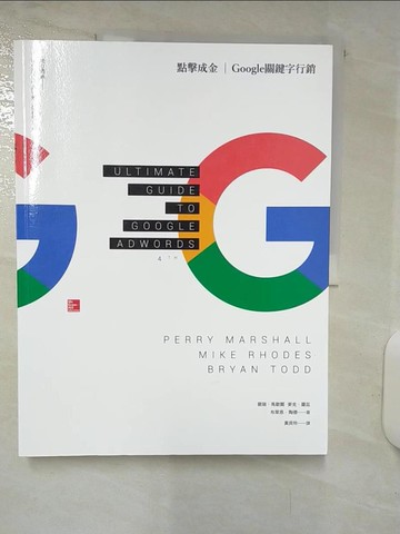 以下書況,主觀上皆可閱讀,若收到後不滿意,『都可退書退款』。 書況補充說明: B 自然泛黃書斑、髒污。 【購買須知】 (1)照片皆為現貨實際拍攝,請參書況說明。 (2)『賣場標題、內容簡介』為出版社原本資料,若有疑問請留言,但人力有限,恕不提供大量詢問。 (3)『附件或贈品』,不論標題或內容簡介是否有標示,請都以『沒有附件,沒有贈品』為參考。 (4)訂單完成即『無法加購、修改、合併』,請確認品項、優惠後,再下訂結帳。如有疑問請留言告知。 (5)二手書皆為獨立商品,下訂即刪除該品項,故『取消』後無法重新訂購,須等系統安排『2個月後』重新上架。 (6)收到書籍後,若不滿意,或有缺漏,『都可退書退款』。 [商品主貨號] U102752884 [代售商品編號] 104699300129 [ISBN-13碼] 9789863412311 [ISBN] 9863412317 [作者] 裴瑞‧馬歇爾 [出版社] 美商麥格羅‧希爾 [出版日期] 2015/12/30 [內容簡介] (出版商制式文字, 不論標題或內容簡介是否有標示, 請都以『沒有附件、沒有贈品』為參考。) 10分鐘內觸及10億人的終極指南 從0開始,建構有獲利空間的AdWords廣告,一夕倍增你的網站流量! 讓Google AdWords專家告訴你Google沒說的基本原則、技巧、工具及竅門: ? 掌握進階廣告活動、Google購物廣告活動及Google Analytics。 ? 落實靈活的出價策略,預算不超支。 ? 利用「多媒體廣告聯播網」大幅提升流量。 ? 利用地方化廣告提升利潤。 ? 避免和多數Google廣告主犯下一樣的錯誤。 ? Google AdWords的轉換追蹤機制哪裡行不通。 中文版《Google關鍵字行銷》全新再修訂, 增補「開疆闢土」5策略,幫助你在網路行銷的世界中攻城掠地! ? 利用全球第二大搜尋引擎YouTube的廣告,以較低成本獲得點擊次數及優質流量 ? 繞過所費不貲的錯誤嘗試,用Advanced Display Network策略在市場上測試概念 ? 仿生Google廣告,用瑞士小刀公式打破文案窠臼 ? 殺手級獨特銷售主張,讓你寫出強大的Google關鍵字廣告 ? 踩穩利基,掌握你的行銷主戰場 Google每天處理將近60億次搜尋,這個強大的廣告媒體不容你錯過! 好評推薦 裴瑞‧馬歇爾結合了多數工程師善長規劃及詩人藝術性的特質。如果你未能遵循裴瑞的公式,你將坐失數百萬美元的商機。-布萊恩‧克爾茲(Brian Kurtz),Boardroom Inc.執行副總裁 裴瑞的方法加上Google AdWords機制,提供許多行銷訊息一種迅速且不貴的測試場所。他是Google AdWords領域的絕頂玩家,是我或我任何客戶在這個領域裡所見過最聰明的人,他提升了客戶的回應率,並教導其他人如何如法炮製。-丹.甘迺迪(Dan Kennedy),《No B.S. Direct Marketing》作者 我從《點擊成金》出第一版便一直在使用它了。我用它將客戶沒有獲利的AdWords帳戶轉變成為金牛──每個月擠出30美元至3萬5千美元的利潤。僅僅觸及這本書的皮毛便能有如此成績了。 談論AdWords的書籍中,這是截至目前為止最好的一本,它同時也是網際網路行銷的超棒參考書。你不只可以利用它獲取Google大量的流量,還可以將這股大流量轉化為買家及口袋裡的鈔票。照我做的去做──別只是自己買書自己用,也買一本送你的朋友吧!-羅伊‧弗(Roy Furr),突破行銷祕訣(Breakthrough Marketing Secrets)部落格編輯,直銷顧問 我利基市場的同行經常問我如何讓自己在搜尋引擎排名這麼好,而且不會因為使用Google AdWords而超支。理由有幾項──我自2003年起便開始訂閱裴瑞‧馬歇爾的電子報;我閱讀他的每一本書;我收聽他安排的每一場電話會議;此外,我落實他的策略與戰術。 《點擊成金》一本才24.95美元。只有傻子才會使用Google AdWords卻不買一本來研究,並落實書裡的概念。不,你在這裡找不到連至亞馬遜網站的聯盟連結。去買來看看吧!-哲‧艾爾斯-艾勒(Jer Ayles-Ayler),AdWords用戶,Trihouse Enterprises, Inc. 我買這本書是為了學習協助我的客戶從AdWords獲得更好的結果。書裡的建議不難仿效,對廣告活動的結果所採取的後續行動也令人振奮。我已經看見我的顧客與廣告活動的點閱率大幅提升。我花更少錢、卻獲得好許多的結果。 我會推薦任何有興趣投入AdWords行銷,或是想讓目前的廣告活動獲得更好結果的人閱讀《點擊成金》。但是在此內容就先保密囉。-亨里克‧赫德柏格(Henrik Hedberg),AdWords用戶 稱這本書為終極指南並不為過。我不斷調整我正在操作的廣告,以引導搜尋者進入我的漏斗。過去幾週,我設法讓我其中一則廣告的點閱率從原先的1%至2%,提升至7%以上!-比爾‧裴瑞(Bill Perry),AdWords用戶 我以為我完全懂它了。我建立一個AdWords帳戶,幾天後我回來檢查看我發了沒。不幸地,我唯一發現的事是Google自由存取我的銀行帳戶。還好流量不大,所以只是損失幾百美元。而且我半毛錢也沒賺到。 我沮喪地上網研究。各個論壇、文章與部落格似乎都在談論裴瑞‧馬歇爾,所以我決定買一本《點擊成金》。讀了30分鐘後,我久久難以忘懷。 接下來,我的關鍵字品質分數從平均2分與3分,提升至6至9分。同時,我的單次點擊出價也從4美元以上降至大約0.5美元。 其它的就不需贅述了。說真的,如果你不知道這本書在說什麼,乾脆就放棄AdWords吧。這本書是AdWords指南。-珍‧保羅‧伊薩姆(Jean Paul Essiam),AdWords用戶) ---------------------------------------------------------------------------------------------------- 分享閱讀 書籍狀態請詳看圖示 如對商品有疑問請使用「聯絡店家」發問,發問時請告知完整商品名稱 ■客服電話服務時間: 