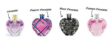 Princess 公主女性淡香水 香 調: 花果清新調 前 味: 青蘋果、黃金杏仁、柑橘、水百合 中 味: 粉紅番石榴、大溪地皇冠花、野生晚香玉、黑巧克力 後 味: 雪紡香草、粉紅冰霜、琥珀、木質香 Flower Princess 花漾公主女性淡香水 香 調: 柑橘花香調 前 味: 長春藤、柑橘、水百合 中 味: 柳橙花瓣、摩洛哥玫瑰、茉莉、里維耶拉含羞草 後 味: 杏仁薄殼香、琥珀、珍貴木質香、麝香 Rock Princess 搖滾小公主女性淡香水 香 調: 花果甜美調 前 味: 覆盆子、白桃、佛手柑 中 味: 夜茉莉、纈草、玫瑰、百合 後 味: 麝香、奶油椰汁、鳶尾花、喀什米爾木 Preppy Princess 花邊公主女性香水 前味:搗碎莓果、多汁橘子 中味:忍冬、茉莉花 後味:誘惑木香、椰子水