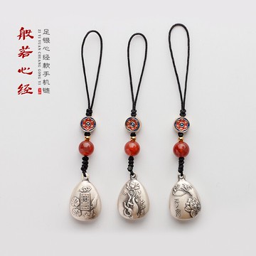 般若心經純銀心經吊墜99足銀飾復古佛手蓮花手機鏈吊墜本命年掛件1入