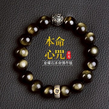 正品天然黑曜石本命佛守護神護身符手串男本命年金曜石女佛珠手鏈
