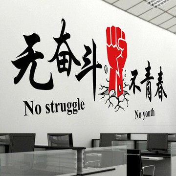 無奮斗不青春勵志創意文字墻貼紙寢室宿舍教室公司企業辦公室貼1入