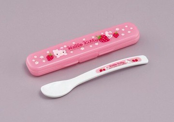 Hello Kitty 粉紅 草莓 嬰幼兒 湯匙 附盒子 餐具 日本製 正版 授權 J00012452