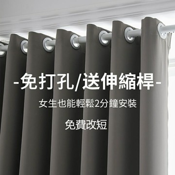 窗簾 免打孔全遮光窗簾送伸縮桿 房間窗簾 隔間簾 落地窗簾 隔簾 落地窗窗簾 伸縮桿窗簾 全遮光窗簾