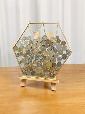 六邊形硬幣展示框收藏金屬相框玻璃透明掛墻裝飾收納簡約復古畫框