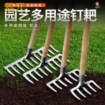 九齒釘耙園藝松土農用工具大全鐵扒子鋼耙摟草神器扒草耙子釣魚爬