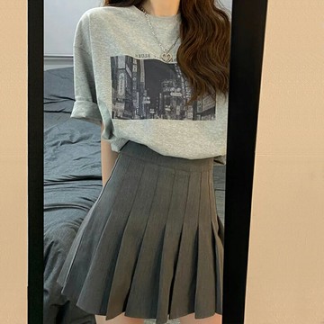 點我下載小個子半身裙女百褶裙a字裙春秋2022新款春季高級感顯瘦灰色短裙