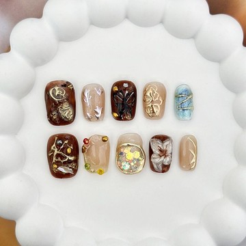 小紅書同款焦糖跳色光療手工美甲成品穿戴甲定制指甲貼片高級顯白【摩可美家】