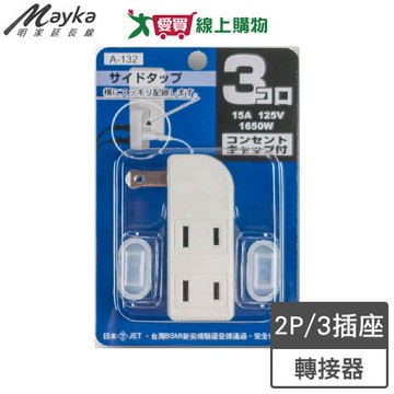 Mayka明家 釣竿型三面插-附2PCS透明防塵蓋(A-132)轉接器 2孔【愛買】