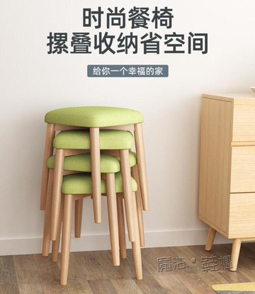 ??快速出貨 可開發票 小凳子 矮凳 小板凳 實木凳子家用可疊放餐桌凳木頭板凳簡約現代圓凳軟包坐凳餐廳高凳