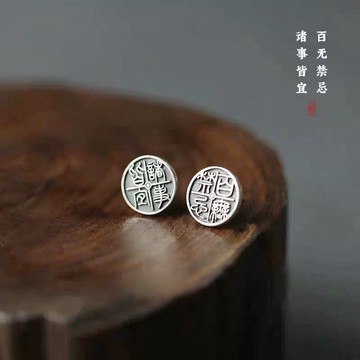 《百無禁忌諸事皆宜》小篆字復古風個性潮流男女925純銀中式耳釘