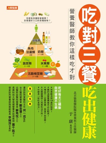 作者:于康 出版社:康鑑文化 出版日期:2015/01/16 語言:中文 ISBN:7268865855918 檔案格式:EPUB3-固式格式 閱讀裝置:閱讀器, Android應用程式, iOS應用程式 *此書為固定版面格式,建議使用平板或電腦閱讀* 認識食物,善用營養 由內而外給自己好健康、好氣色 ●種類 區分主食、副食、蔬果、肉類、蛋奶以及零食等,善待食物,學會如何跟食物打交道。 ●顏色 每餐均衡攝取紅、橙、黃、綠、紫、黑、白等各色蔬果,輕鬆打造無病痛的亮麗人生。 ●族群 從年齡、職業、疾症等區分不同族群,找出適合自己的飲食方式,吃出健康,趕走病痛。 ●成分 詳列各種食材所含的養分、功效、人體需求量、缺乏時會產生哪些疾症?又可從哪裡補充?