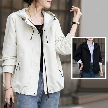 不能錯過!巨巨巨顯瘦,L*U家女士戶外寬松連帽短款風衣外套女春