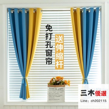 窗簾 【寬1.5*高1.8m】遮光布免打孔窗簾純色拼接款簡約現代臥室飄窗短簾小窗