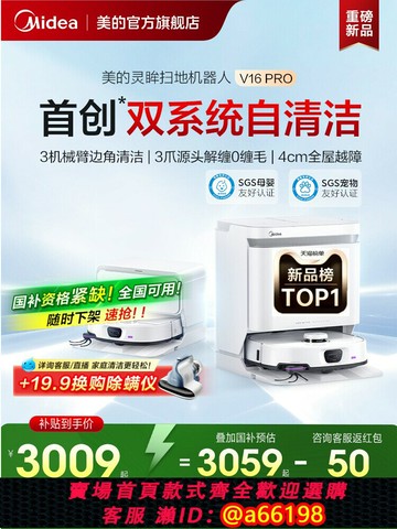 【台灣公司 可開發票】【政府補貼15%】美的靈眸掃地機器人V16Pro家用全自動掃拖吸一體