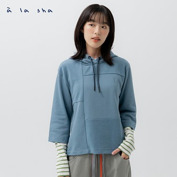 a la sha 抹茶繡花拼接連帽棉T