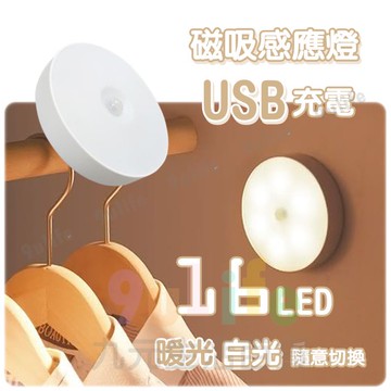 【九元生活百貨】磁吸感應燈 M-7156 LED感應燈 USB充電式人體感應燈 16LED燈泡 暖光白光