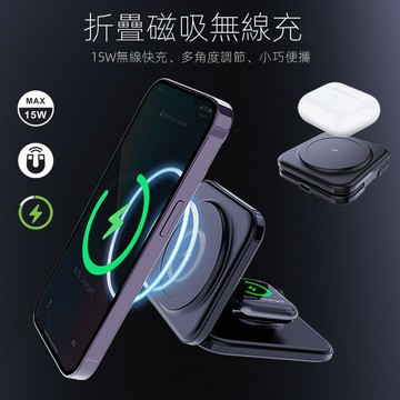 Qi2三合一折疊磁吸無線充電器 MagSafe 25W無線充電板 伸縮線 iPhone/AirPods/Apple Watch