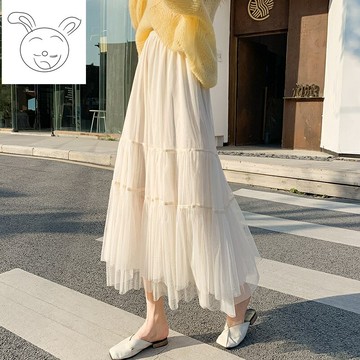 紗裙女半身秋冬天超仙的不規則網紗裙配毛衣中長款蛋糕仙女裙1入