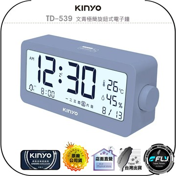 【飛翔商城】KINYO 耐嘉 TD-539 文青極簡旋鈕式電子鐘◉公司貨◉日期星期顯示◉旋鈕調節◉鬧鈴貪睡◉溫濕度感應
