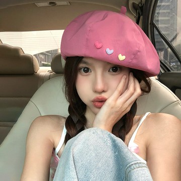 日系甜妹愛心貝雷帽女夏季百搭大頭圍顯臉小薄款透氣畫家蓓蕾帽子