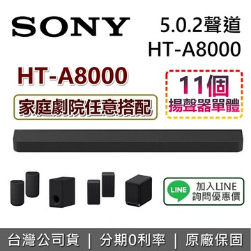 ✨購買期間:2025/12/16~2026/03/01止 ??登錄送:好禮即享券2.0 $1000 前往組合賣場→ HT-A8000 想要有更優惠的價格嗎? 馬上加入我們的LINE詢問專屬優惠價! LINE ID:@374abpsn →一定要加@喔! ●賣場庫存流動性較高,下單前可先私訊或加LINE詢問庫存● ★歡迎致電、溝通詢問,貨況、議價都可以,會有專人直接回覆喔~ ★專人服務資訊:07-9668808分機509(陳小姐),服務時間為周一至周五9:00-18:00