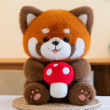 2025可愛抱蘑菇小熊貓公仔卡通小浣熊毛絨玩具公仔安撫男女孩抱枕