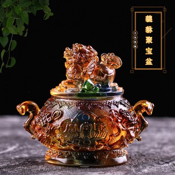 琉璃八吉祥招財貔貅聚寶盆公司開業禮品家居玄關喬遷高端桌面擺件