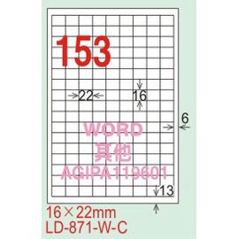 龍德三用列印電腦標籤/LD-871-W-C/白色/153格/20張/包