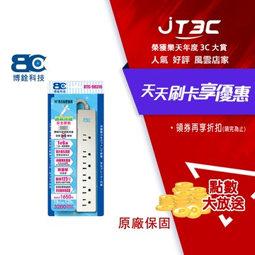 BC 博銓 1開6插3孔加大孔距延長線 1.5米(KTC-98316/15A/1.5M)