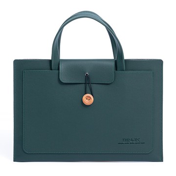 綠色皮革筆電保護套附提把 – 真皮筆電包