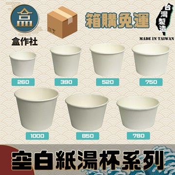 ✅採用食品級PE淋膜包覆 #防水防油硬挺度提升 ✅歡迎店長客服討論客製化 #建立獨一無二的品牌形象 ??品名:紙湯杯 ??款式:空白款 ??數量:請參閱各品項說明 ??材質:PE淋膜+紙 ??耐熱溫度:下底0度~95度,可冷藏/可微波 ??尺寸說明:(詳細可參考圖片尺寸說明) #底蓋分開販售 #下單前建議先店長客服確認商品材數 各款式超商取貨單筆限制請詳見: ♦️260紙湯杯 尺寸:口徑9cm/底徑7.3cm/高度6.3cm 數量:1箱1000入 #配蓋2632平蓋 ♦️390紙湯杯 尺寸:口徑10.2cm/底徑8cm/高度7.5cm 數量:1箱1000入 #配蓋390平蓋 ♦520紙湯杯 尺寸:口徑11.2m/底徑9cm/高度8.4cm 數量:1箱1000入 #配蓋520平蓋 ♦750紙湯杯 尺寸:口徑12.7m/底徑10.7cm/高度7.9cm 數量:1箱600入 #配蓋6585平蓋/6585凸蓋 ♦780紙湯杯 尺寸:口徑14.2m/底徑12cm/高度7.5cm 數量:1箱600入 #配蓋8511平蓋/8511凸蓋 ♦850紙湯杯 尺寸:口徑14.2m/底徑11.2cm/高度8.5cm 數量:1箱600入 #配蓋8511平蓋/8511凸蓋 ♦1000紙湯杯 尺寸:口徑14.2m/底徑11.1cm/高度10.8cm 數量:1箱600入 #配蓋8511平蓋/8511凸蓋 #公版產品隨機出貨不挑圖 #手工測量誤差1cm左右為正常誤差,介意者請慎購。 #一次性餐盒 #微波餐盒 #空白紙湯杯 #免洗餐具 #外帶餐盒 #湯麵碗 #紙碗 【訂單注意】?? ⚠️如商品體積過大無法超取需請買家更改寄送方式。 #超取包裝30*30*45,請依照商品說明的數量下單。 #若選用樂天宅配,一律使用47*38*66之宅配箱。 ⚠️請勿在店長客服和訂單備註款式&顏色,下單前請確認款式&顏色,並正確下單。 【出貨注意】?? ??賣家宅配-寄出後約2至3天到貨。?? ??超商取貨-寄出後約3至4天到貨。?? #如遇節日貨運運能不足請見諒 【客服諮詢】?? ??快速線上諮詢,有任何問題,歡迎使用店長客服詢問?? ??收到商品時發現任何異常,請將商品與出貨單拍照,上傳至店長客服,客服人員上班時間第一時間幫您處理?? 空白 260湯杯(1箱1000入) 空白 390湯杯(1箱1000入) 空白 520湯杯(1箱1000入) 空白 750湯杯(1箱600入) 空白 780湯杯(1箱600入) 空白 850湯杯(1箱600入) 空白 1000湯杯(1箱600入) 260平蓋(1箱1000入) 390平蓋(1箱1000入) 520平蓋(1箱1000入) 6585(750)平蓋(1箱600入) 6585(750)凸蓋(1箱600入) 8511平蓋(1箱600入) 8511凸蓋(1箱600入) 850單格內襯(1箱1200入) 850三格內襯(1箱1200入)