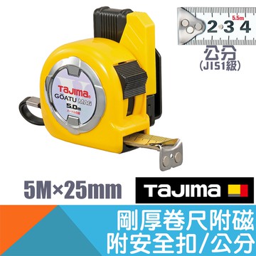 剛厚雙面卷尺5M×25mm 磁性尺爪、附安全扣、公分【日本Tajima】