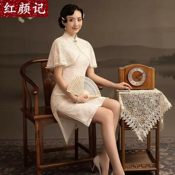 韶華民國老上海主題影樓寫真古裝中國風復古蕾絲修身優雅文藝旗袍