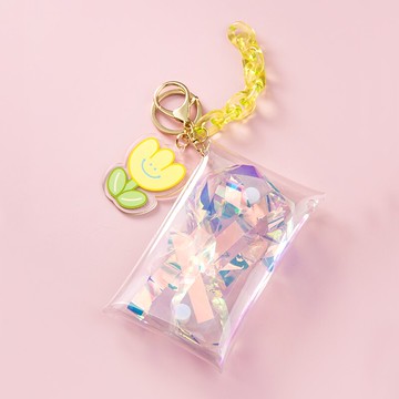 小花朵透明零錢包鑰匙扣網紅硬幣卡片包迷你收納包汽車鏈鎖匙圈環