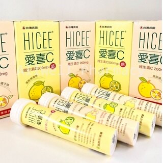 品名:HICEE 愛喜維生素C 500mg+鈣口嚼錠 內容量/入數:60錠/瓶、20錠/條 營養標示:每錠含維生素C 500 mg、鈣100 mg 成分:D-甘露醇(甜味劑)、維生素C(抗壞血酸鈉、抗壞血酸)、碳酸鈣、硬脂酸鎂、二氧化矽、羥丙基甲基纖維素、香料(麥芽糊精、二氧化矽、香料)、蔗糖素(甜味劑)、食用黃色四號 劑型:錠劑 保存方式:25℃以下貯存,避免高溫及陽光直射,使用後請密封瓶蓋避免受潮 (瓶內之乾燥劑,請勿吞食) 保存期限:24 個月 (商品依序出貨,收到商品時,所剩有效期間會較前述日期為短) 產地 :台灣 食品業登錄字號:G-142042734-00003-3 產品責任險契約字號:新安東京海上產物保險1700008ML000349號 製造/進口商名稱:杏輝藥品工業股份有限公司食品工廠 製造/進口商地址:宜蘭縣冬山鄉中山村中山路84號2樓之1 注意事項:含於口中使其溶解或咀嚼後吞食,每日2次,每次1錠,1日請勿超過2錠,多食無益 ------------------------------------------------------------------------------------------------------------------------------- 品名:HICEE 愛喜維生素C 200mg 口嚼錠 內容量/入數:60錠/瓶、20錠/條 成分:蔗糖、維生素C (抗壞血酸鈉、抗壞血酸)、硬脂酸鎂、二氧化矽、羥丙基甲基纖維素、香料(麥芽糊精、香料、柳橙油)、食用黃色五號鋁麗基、食用黃色四號鋁麗基 劑型:錠劑 保存方式:25℃以下貯存,避免高溫及陽光直射,使用後請密封瓶蓋避免受潮 (瓶內之乾燥劑,請勿吞食) 保存期限:24 個月 (商品依序出貨,收到商品時,所剩有效期間會較前述日期為短) 產地:台灣 食品業登錄字號:G-142042734-00003-3 產品責任險契約字號:新安東京海上產物保險1700008ML000349號 製造/進口商名稱:杏輝藥品工業股份有限公司食品工廠 製造/進口商地址:宜蘭縣冬山鄉中山村中山路84號2樓之1 注意事項:含於口中使其溶解或咀嚼後吞食,每日2次,每次1錠,1日請勿超過2錠,多食無益