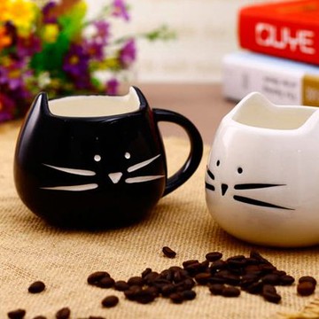 景德鎮陶瓷黑白貓可愛風陶瓷杯 簡約情侶對杯貓咪咖啡杯馬克水杯