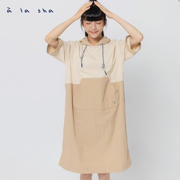 a la sha 阿財拼接連帽短袖洋裝