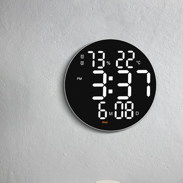 好物 多功能電子掛鐘帶溫濕度客廳掛鐘圓形簡約時尚中英文切換彩燈6620