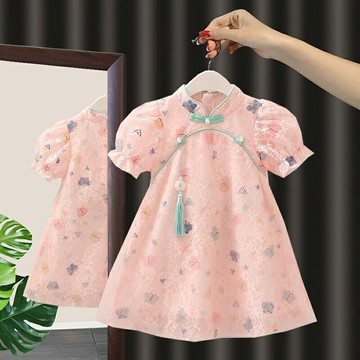 兒童旗袍 古風 冬季款 短袖素面款(粉色)